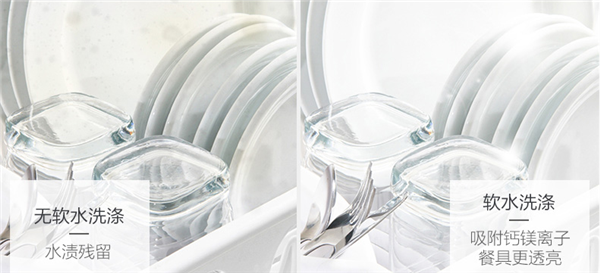 我们经常会碰到,手洗后的餐具表面都会残留下水渍,看起来就像没有洗干净一样,但即使洗再多遍,表面看起来依然是脏脏的。这其实因为水质太硬,里面的钙离子等其他的矿物质成分会附着在餐具表面,造成餐盘“洗不干净”。