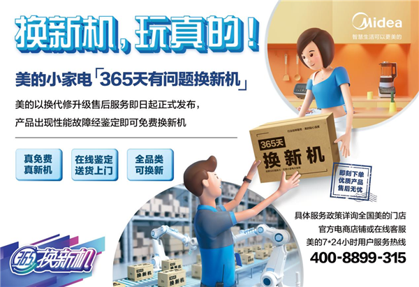 事实上,早在去年1月1日,美的在行业内推出了小家电“以换代修”服务政策,即用户购买美的所生产的微波炉、微蒸烤料理机、电烤箱、吸尘器、扫地机、除螨仪、电动拖地等智能小家电,购买15天内,可按照平台规则进行退换;买15天后,在365天内,出现非人为质量问题,可通过在线鉴定,享受相应服务。此项售后服务一经推出,就赢得消费者的好评和信赖。