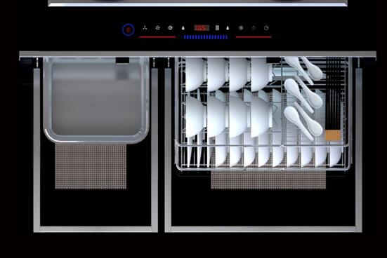 金帝X900KX2双腔蒸烤消集成灶最具特色的地方便是其双腔结构,30L的蒸烤箱+50L消毒储物柜,左右腔体采用黄金分割设计,从而呈现出恰到好相处的视觉切割效果。值得一提的是,左腔的蒸烤一体箱和右腔的消毒柜采用独立操作界面,蒸烤和消毒两种模式可同步进行,互不干扰。