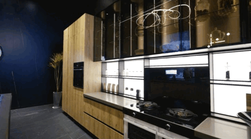亿田高端定制厨房「柏伍德」系列,似木非木,复刻了原木的花色与纹理,令人仿佛穿越自然,于山野间摇曳,悠然而行。