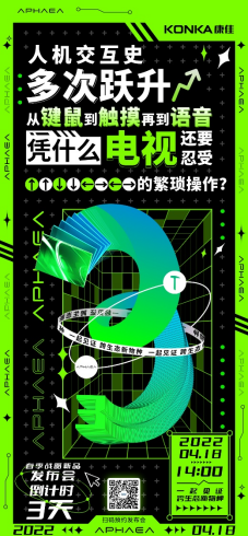 结合春季战略新品发布会倒计时三天的海报,图中配文表示:“人机交互史多次跃升,从键鼠到触摸再到语音,凭什么电视还要忍受↑↓←→的繁琐操作?”康佳APHAEA品牌和锤子logo图标连成一圈,“一起见证,跨生态新物种”。以此不难猜测,康佳新品联合Smartisan OS将颠覆“远场语音”、“传统遥控”等传统人机交互方式,带来全新的电视交互体验。