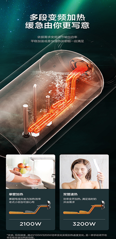 日常生活中,不仅是沐浴用水,还有生活洗涮用水。然而,传统电热水器,由于加热速度慢,往往要等上好长时间,并且无法自由调节温度,而无法满足用户热水需求。