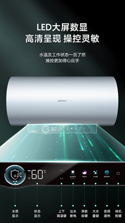 不仅如此,美的电热水器JA7,还拥有高颜值外观设计和便捷的智能化操控体验。外观上,它采用榭湖银配色,优雅而大气,LED多彩全面显示屏,水温及工作状态,一目了然。