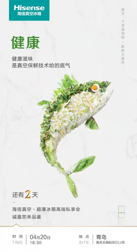 海信冰箱作为用户需求的洞察者,精准捕捉用户所需,海信真空·超薄冰箱就为健康保鲜提供了优质解决方案,以真空保鲜科技为底气供给健康味道。4月20日,海信真空·超薄冰箱高端私享会将在现场展示真空保鲜的强大实力,可以亲眼见证健康味道的诞生,还有2天,海信真空·超薄冰箱诚邀您来品鉴!