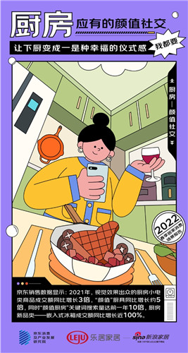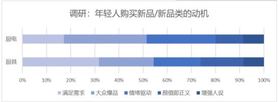 在此前京东发起的一项调研中,分析35岁以下人群购买厨房电器/厨具的动机可见,年轻人购买厨房电器时,受大众口碑影响很大,而对厨具的颜值、设计感(增加人设)的敏感度明显更高。比如近几年年轻人尤其是女性热衷购买的颜值珐琅锅,无论是马卡龙色还是鸢尾紫色,摆在厨房就是一道靓丽的风景线。京东春季家装节数据显示,锅具颜值担当的代表酷彩新款珐琅锅在开门红的前28小时内成交额同比增长15倍。