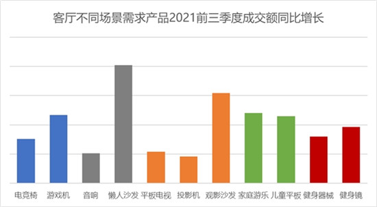 例如上个月创维电视携手京东推出首款平台定制“全通道高刷游戏电视”创维A43,专为年轻用户研制的产品系列。凭借对次世代游戏玩家需求的精准洞察,创维赋予了A43多种直击用户需求的“顶配”性能,充分满足年轻用户对次世代游戏装备的超前畅想。此外,观影沙发的需求日渐火爆,2022年Q1,可多角度任意调节的功能沙发成交额同比增长1.5倍,适用于客厅娱乐的懒人沙发成交额同比增长100%。
