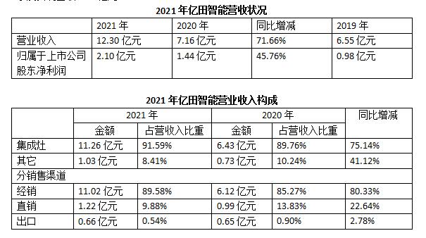 近几年,亿田智能一直在构建立体式的销售渠道,截至报告期末,亿田智能拥有经销商1300多家,在全国主要县市级城市设立了专卖店,基本实现经销渠道的广泛覆盖,为公司扩大品牌知名度和提高市场占有率提供了有力的渠道保障。除经销渠道外,亿田智能进行了“KA渠道+电商渠道+家装渠道+工程渠道+下沉渠道”等立体式渠道的战略布局,截至报告期末,京东家电、天猫优品、苏宁零售云、五星万镇通、国美新零售等下沉渠道网点入驻及经销商专卖店合计3500多家;合作装企5200多家。