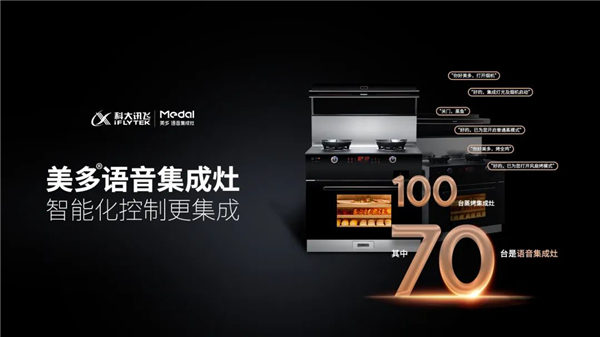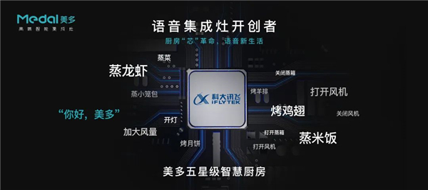美多集成灶为了进一步提升用户智能体验,与国内领先的语音智能企业、芯片设计公司-科大讯飞达成长期战略合作,搭载讯飞人工智能AI语音操控,攻克厨电智能化语音方面的多个难题,在厨电行业智能语音领域带来了创新性突破。
