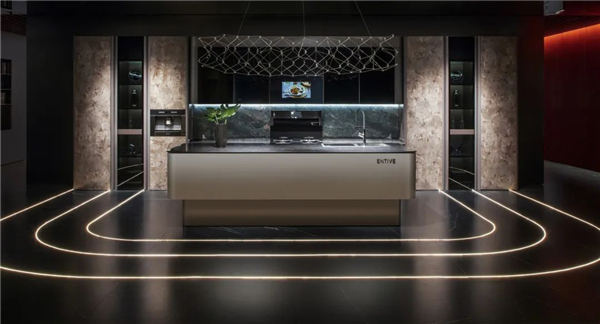 中岛不仅仅是烹洗之地,亦是情感沟通的场所。人们一边忙碌于备餐,一边进行亲子交流,彼此陪伴,偶尔相视一笑,温情流淌其中。或广邀亲朋好友,插花品茗,觥筹交错间,尽享生活乐趣。