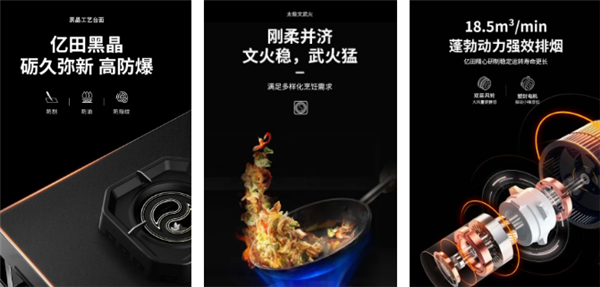 除了不断突破升级的创新科技,亿田S8M蒸烤独立集成灶同样延用黑晶工艺面板,凸显外观尊荣大气的同时,更耐指纹、耐油污、耐刮擦,安全性能更有保障;太极燃烧器,5.0KW文武火设计,深腔结构,双重聚能不锈钢炉架,聚能更充分,燃烧更彻底;256mm静音自净风轮,全封闭塑封电机,防水、防火、防尘、防油、防过热、防过流、防过压、七大防御,成就18.5m3/min大风量,蓬勃动力,强效排烟,油烟吸净率高达99.95%!