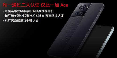 强悍配置加上领先行业的游戏技术,一加Ace获得了多项专业认证。发布会上,一加宣布一加Ace获得泰尔实验室的游戏手机认证并且通过了首届英雄联盟手游职业联赛比赛用机硬件测试认证,成为了首届英雄联盟手游职业联赛推荐用机;此外一加Ace还通过了和平精英职业联赛技术实验室赛事环境认证。