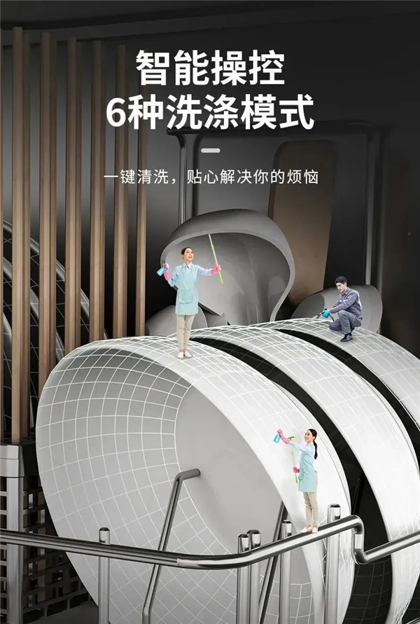 又有六大智能洗涤模式,“强力洗、标准洗、节能洗、餐前洗、快速洗、玻璃洗”,根据厨房不同场景进行科学合理的水电配比,不浪费每一滴水,每一度电。
