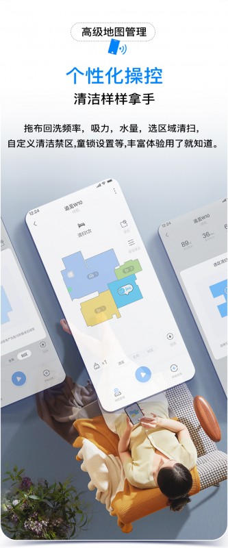 追觅扫拖洗烘一体机器人W10是一款充满创新设计和差异化功能的产品,简洁而又智能的APP交互界面,使用户能够轻松体验其强大的实用性。LDS激光智能导航可以帮助W10实现快速建图,不仅可以更早感知家居常见障碍物、丛容避障,其AI自动识别更能够判断房间类型,并在APP中清晰的体现出来,便于用户选区清扫。除此之外,APP的智能交互还可以有更多应用,用户可以自定义扫地机器人应该避开的禁区,把重点清洁区域标注出来;用户也可以借助APP多功能操作,实现多楼层映射,这对居住在复式楼的用户非常重要,因为它避免了构建多份地图的麻烦。