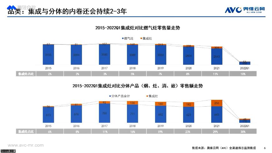 不过,就2022年来看,集成灶市场大概会继续保持二位数的增长,正如奥维云网(AVC)厨卫事业部研究总监刘冀元所言,集成灶将成为2022年最具看点的一个品类。