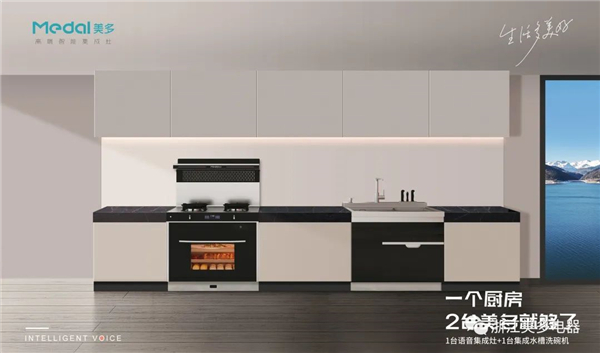 一台美多语音蒸烤类的集成灶1台=16台,集合油烟机、燃气灶、消毒柜、置物台、蒸箱、烤箱、保温箱、电饭煲、0.9米橱柜、面包机、烘干机、发酵机、炸锅、蒸蛋器、电炖锅、电烤架,方寸间凝聚美食创想。一台美多集成水槽洗碗机搭载洗涤、切配、洗碗、除菌、消毒、烘干,一机多用!两者更好搭配橱柜风格,更显品位和优雅,集成厨电占地面积小,省下空间可随心利用,吊柜还能增加储物,非常实用。