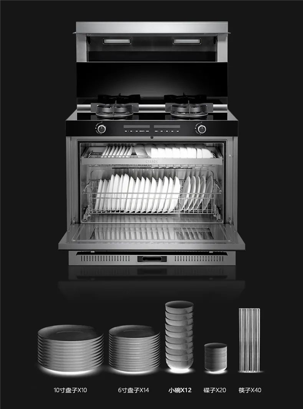 佳歌首创的一门式集成灶由此诞生。没有双抽式单层空间狭窄的弊端,打破行业6-7寸的高度限制,10寸大盘也能竖直放入,大大提升了消毒柜的实用性。