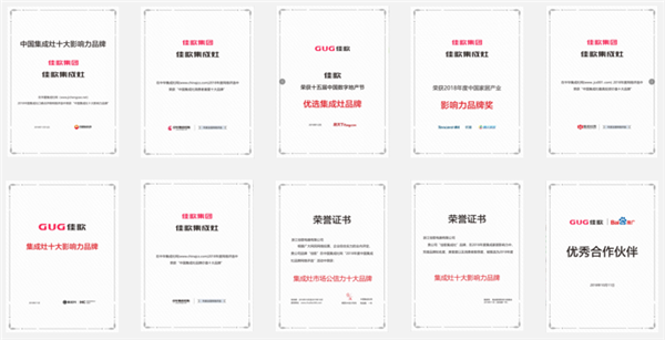 凭借强大的企业研发实力、差异化的高品质集成灶和日益强大的品牌影响力,佳歌集成灶一路收获“集成灶十大品牌”、“集成灶影响力十大品牌”、“轻厨时代设计师推荐先锋红榜科技创新产品奖”等诸多荣誉。