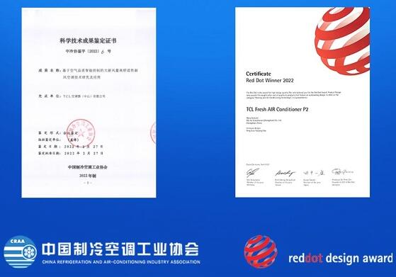 2022年2月27日,由中国科学院院士西安交通大学何雅玲教授担任鉴定委员会主任,组织了行业顶级权威专家组,一致鉴定TCL新风空调技术在“大新风量、低噪音”、“空气质量实时显示控制”、“发明小蓝翼实现恒温舒适效果”等达到“国际领先”水平。