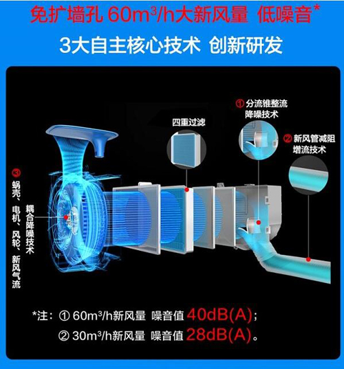 TCL新风空调小蓝翼II两匹挂机创新实现了不用二次打墙孔60m3/h大新风量,可为家庭卧室营造舒适健康且符合标准的空气环境。要知道,中国国家标准GB/T18883-2002规定每人每小时新风量(从室外引入的新鲜空气)不应小于30m3/h,而TCL新风空调小蓝翼II整整超出一倍,是大新风量新风空调先行者,让更多消费者轻松享受更加健康的空气。
