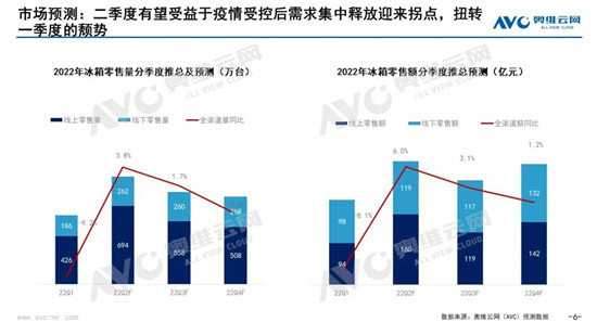 一方面,受此轮疫情防控政策影响,部分居民逐步养成了囤货习惯,且由于新冠病毒的长期影响和坚定的动态清零政策,预计短期内疫情影响仍将持续,居家隔离的囤货需求将加速冰箱结构升级的换新需求。另一方面,基于现阶段消费市场环境,政策面出台实施的包括减税降费、家电促销,消费券以及新一轮家电下乡等在内的一系列政策措施,后续或将有效提升消费信心,释放消费需求。奥维云网(AVC)预测,2022年Q2全渠道零售量同比增长3.8%,零售额同比增长6.0%。随着国内疫情防控形势逐步好转,各地促消费政策进一步落实,预计二季度市场将再呈现恢复性增长,扭转一季度的颓势。