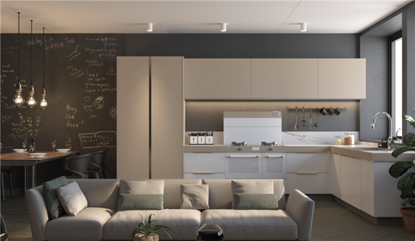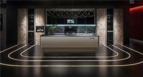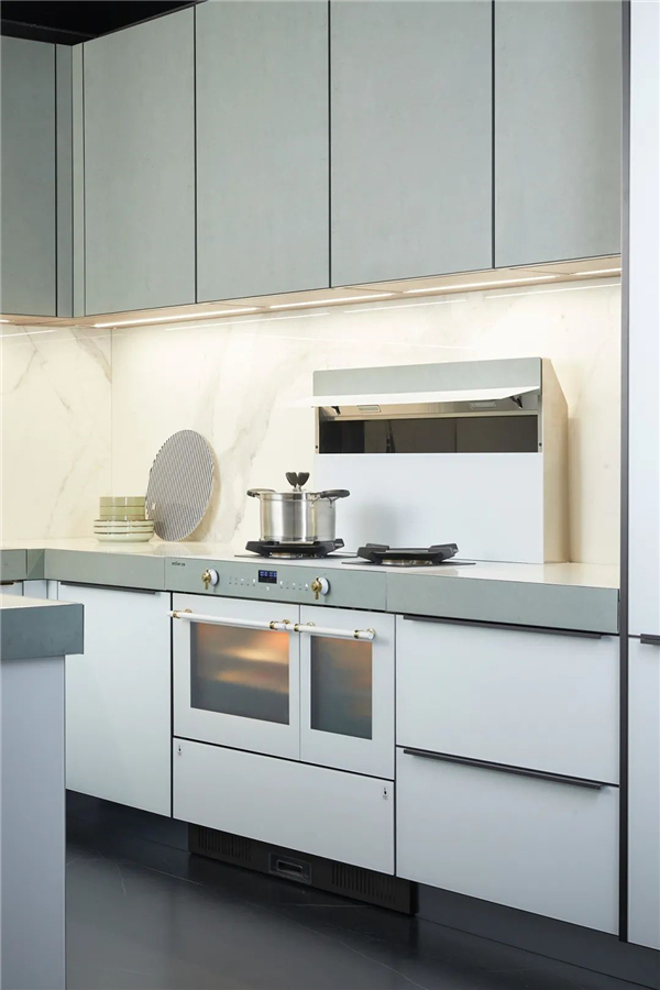亿田高端定制厨房以整体厨房视角切入,配备与厨柜风格相符的厨电,实现风格一体化定制,呈现和谐统一之美。