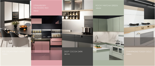 亿田高端定制厨房联合全球知名色彩开发机构,重磅推出5大特调色,提供丰富的定制色彩选择,让人眼前一亮。