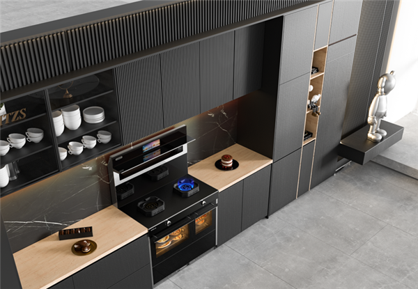 比如,S8A凭借“油烟机+燃气灶+蒸箱+烤箱+吊柜空间+置物台”六大单品极致集成,最终呈现出“全面出色”的功能之王本色。而S8M搭载了AliGenie系统和6.8寸智能彩屏,言屏双控带来了更具人性化和趣味性的智慧厨房体验。