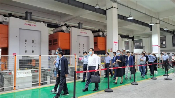 绍兴市人大常委会党组副书记、副主任邵全卯一行首先参观了佳歌集成灶4.0智能化工厂,在走访智能化生产车间中了解到,佳歌电器在成立之初就对产品的生产研发要求严苛至极,采用全数控全模具化的生产,单单是模具佳歌就有上百套,单个模具研发投入最高达到二百多万。