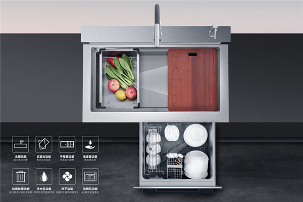 一台机器八大功能集合,提升了厨房效率,四个大模块设计,节省更多空间,大幅度的提高厨房效率和空间利用率,解决你的餐后工作,给你更多茶余饭后的休息时光。