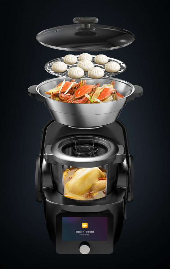 虽然只是一台机器,可烹饪效率比传统厨电更高。因为御膳家集成38种常见厨电的功能,蒸煮焖炖炒炸、和面、榨汁、酱料,一台机器都能做出来,一台机器即为一个厨房!还能一次性做三道菜,极大地提升了做菜效率,在短时间内做出能够宴请多人的丰富餐食。