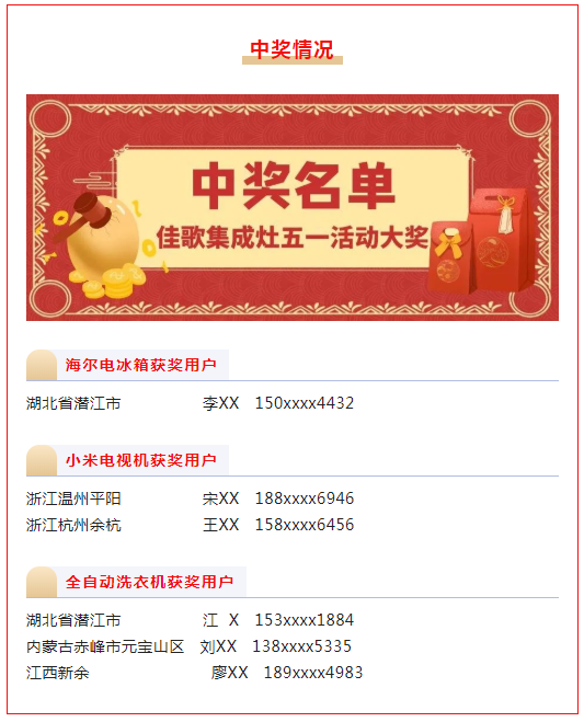 其余奖项请参与本次活动的消费者朋友们联系当地门店进行中奖情况核实!