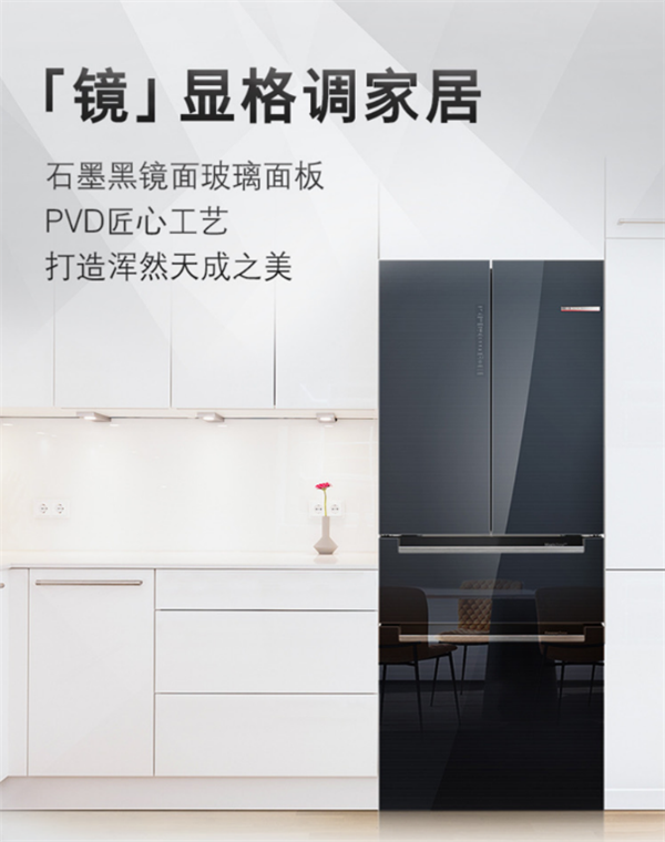 作为专为对健康品质生活群体打造的品质冰箱,博世全域智净M7冰箱·活氧版也在外观设计上进行了精心打磨,诠释全新德国工业设计语言。该产品外部采用的PVD镜面玻璃面板,尽显高阶格调;石墨黑镜面颜色,典雅大气,可与各类家居风格轻松适配。
