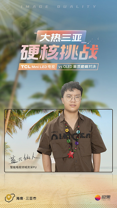 据网上公开的横评视频来看,这次的测评选择了价位更高的OLED电视作为TCLMiniLED电视Q10G的对手。测评地点则选在了中国最靠近赤道的省市——三亚。之所以选在三亚,因为三亚地处热带,全年无冬,强光直射和烈日高温更是5月常态,在此进行横评测试,将会让两款电视产品直面烈日阳光和极限高温的考验。