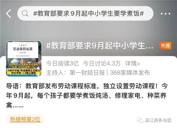 教育部在前段时间正式印发《义务教育课程方案》,再一次把劳动课提到了中小学一门独立课程的高度,也将“教育部要求九月起中小学生要学煮饭”的话题送上了热搜第一。