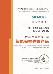 西门子智能eNose冰箱KF72FPA56C荣获“2022中国冰箱行业智能保鲜先锋产品”
