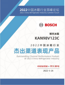 博世灰阶全域智净对开门冰箱KAN98V123C获评“杰出渠道表现产品”奖