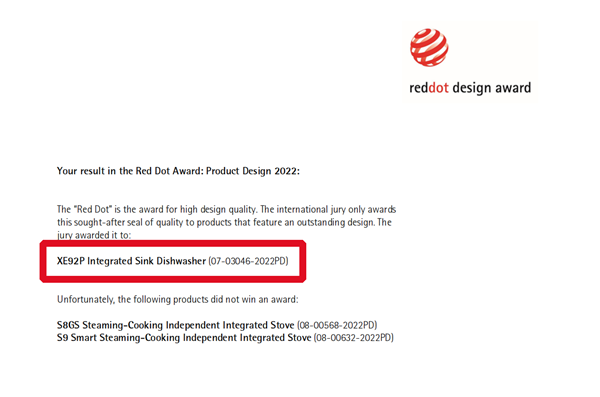 此次德国红点奖、美国IDEA设计奖两大奖项评选,吸引了全球约上百个国家,数万件作品投稿参赛。亿田XE92P集成水槽洗碗机顺利通过赛事评委们的专业评选,并最终从全球数万件参赛作品中脱颖而出,再次验证了亿田引领行业的专业实力!