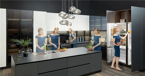 冰箱内嵌,隐藏式设计,整体相融,视觉统一,又减少卫生死角,便于清洁。