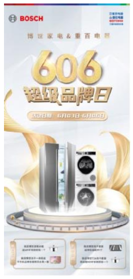 近日,第10届重百家电节正如火如荼地进行。紧跟重百家电节的家电焕新消费热潮,6月3日-6月6日,博世家电将携手重百电器开启以“除菌专家,安心护家”为主题的606超级品牌日(以下简称:超品日),为重庆消费者带来博世·活氧净对开门冰箱、博世·4系净速系列10kg洗烘套装等品质好物,更有多重豪礼福利加码,助燃焕新热情。除此,超品日期间还将举行“活氧除菌大挑战”活动,向消费者现场展示博世活氧除菌实力。
