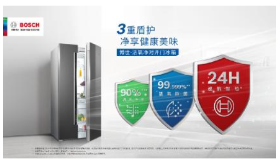 超品日重推的博世·活氧净对开门冰箱,自上市以来,凭借3重盾护实力深受消费者青睐。其搭载的巡航智检、活氧除菌、清风净味3重盾护,不给细菌可乘之机,让冰箱轻松保持长久清新。众所周知,冰箱环境封闭,一旦放置的食物发生腐败、变质,很容易产生各种异味,甚至滋生细菌,影响消费者健康饮食。博世·活氧净冰箱所搭载的第1重盾护“巡航智检”则能让冰箱内异味问题迎刃而解。博世Sensortec专利VOC探测器的活氧净模块具有高灵敏度和高精确度,它可24小时1检测冰箱内部异味,时刻守护食品安全。配合第2重盾护“活氧除菌”,冰箱内的探测器一旦检测到异味,就会释放出活氧和负氧离子,迅速有效杀灭99.999%2的细菌和99.98%的病毒。另外,第3重盾护“清风净味”源自冰箱配置的活氧净模块。经检测证明,活氧净模块可有效祛除冰箱内90%3的异味,为食物提供清新健康的储存环境。