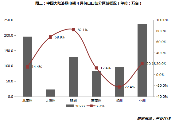 产业在线数据显示:2022年4月彩电产量1019万台,同比增长9.7%,销量1010万台,同比增长9.5%;其中出口765万台,同比去年增长17.3%;内销245万台,同比去年下滑9.4%。综合1-4月份来看,内销出货1133万台,同比下滑7.5%;出口2795万台,同比增长7.0%。去年4月份出口市场正面临运费上涨、面板价格上涨种种不利因素造成出口量降到四年内最低,因此今年出口市场受到基数的影响增长态势比较明显,但是对于20年与19年,该出口量为正常出口;内销市场依然增长比较乏力。