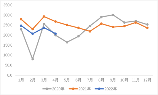2022年4月,国内滚筒洗衣机产量228.9万台,同比下降15.6%;总销量229.1万台,同比下降16.4%。其中内销125万台,同比下降22%;出口104.1万台,同比下降8.6%。同期波轮产量262.5万台,同比下降23.1%,波轮销量255.3万台,同比下降26%,内销出货151.8万台,同比下降20.5%,出口103.5万台,同比下降32.8%。