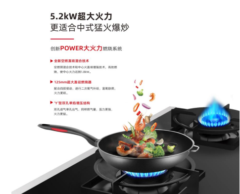 中国人做菜最喜欢的就是爆炒,一道道大火烹饪的佳肴才真正“落胃”。而爆炒最讲究的就是火候,很多人爆炒很容易出现火不够猛、加热不均匀的情况,爆炒出来的菜自然色香味不全。德意蒸烤均衡集成灶,创新POWER大火力燃烧系统,可达到5.2kW超大火力,相较于普遍的3.8kW-4.0kW火力,更适合国人的爆炒烹饪习惯,爆炒无压力,重拾炒菜的“灵魂”。
