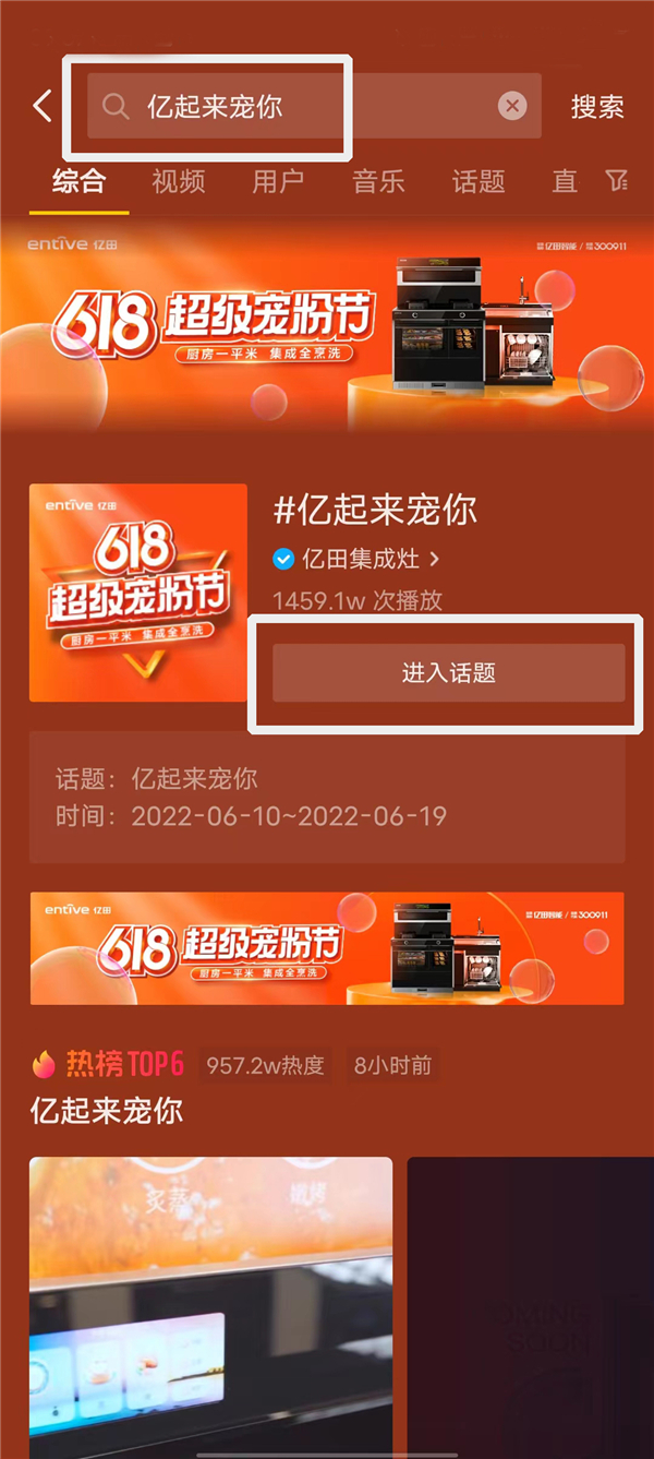 抖音搜索话题#亿起来宠你;