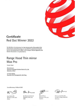 红点奖是国际公认的全球工业设计顶级奖项之一,至今已有60年历史,与德国“iF奖”、美国“IDEA奖”并称为世界三大设计奖。此次获奖的创维薄镜烟机Max Pro产品,采用双边曲面,打造视觉无界延伸,首创翻潜拢吸等多项技术,实现低空速吸,油烟不上脸,全面提升烹饪者的欢愉体验,终获国际权威机构认可。