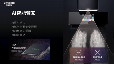 创维厨电以用户需求为研发导向,用技术突破解决用户痛点,在智能安全方面将创维薄镜Max Pro化身为AI智能厨房管家,ITO大数据自动更新,燃气泄漏报警系统,打造智能安全的下厨空间。
