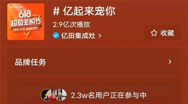 亿田618,亿起来宠你!6月10日-19日,亿田携手今日头条、抖音官方共同专题打造「亿起来宠你」抖音挑战赛!活动进程刚过半,播放量已达2.9亿+次!超2.3万名亿田厨房玩家与抖音粉丝倾情参与,共同体验“厨房一平米,集成全烹洗”的亿田集成烹洗中心全新感官!