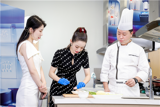 吉娜还在直播间里大秀厨艺,利用直播间的CQ9161D蒸烤炸一体机,做了一道蜜汁鸡翅,鸡翅外焦里嫩,皮脆鲜香,令人回味无穷,没有放油更健康。同时现场还炒了一道虾仁芦笋,轻脂低卡,口感清爽,这两道菜健康又美味。