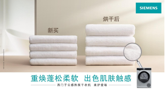 西门子家电洞察消费者干衣需求,思考空间、温度与空气流通这三大要素对干衣功能的影响,在软硬件上全面升级,创新推出西门子云感热泵干衣机,不仅解决梅雨季衣物除菌、烘干的问题,而且还能精致护衣,重焕衣物织品的柔软触感。
