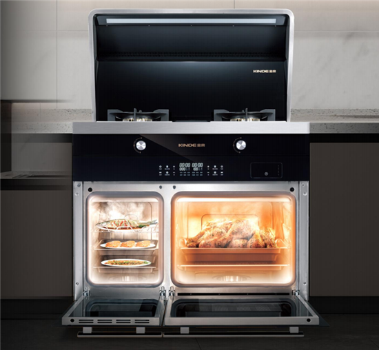 当然颜值只是它的外在之美,其内在强劲的实力,依旧抢眼。从蒸烤一体到双蒸一烤的升级,不单单是空间的升级,更是烹饪和厨房的升级。30L蒸烤小箱,升温快更省时;50L大蒸箱,容量更大效率更高。顶部涡流热风和内胆自动激光无死角焊接等创新工艺,带来更专业的蒸烤体验和更舒适的厨房生活。对于金帝A900ZK2双蒸一烤集成灶来说,其强劲的4.5kW的大火力配合上进风系统,对于中式厨房里的煎炸烹炒信手拈来。而600pa大风压的智能变频数字电机和创新的侧吸下排设计,使其油烟吸净率高达99.9%,不用再担心油烟逸散,强劲致净成为你的上好帮厨。